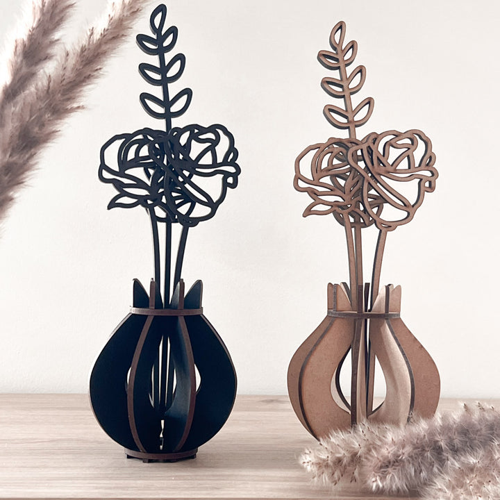 Deze set bestaat uit twee rozen, en een takje lavendel. Deze mooie bloemen hoeven geen water en blijven dus mooi! ook als je geen groene vingers hebt. Het bloemensetje is inclusief vaasje.Het vaasje kan je makkelijk in elkaar zetten. Bekijk hier de instructie video Hoogte: ~28cmDe bloemetjes kunnen nog een beetje ruiken naar het gebrande hout.