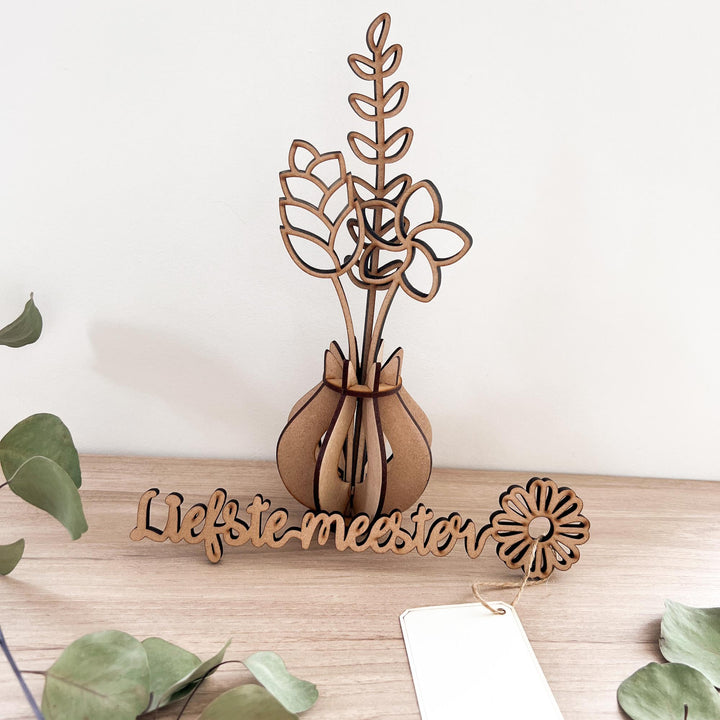 Wil jij de juf of meester verrassen met een leuk bloemetje en een kaartje? Dan is dit setje echt wat voor jou! In dit setje zit het bloemensetje hyacint en een wensbloem. dit setje is ook verkrijgbaar in het zwart. Het vaasje is erg makkelijk zelf in elkaar te zetten, hiervoor kan je deze instructie video gebruiken. Je kan bij dit pakket kiezen uit de volgende wensbloemen: - Liefste juf- Liefste meester