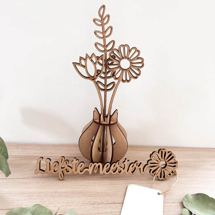 Wil jij de juf of meester verrassen met een leuk bloemetje en een kaartje? Dan is dit setje echt wat voor jou! In dit setje zit het bloemensetje hyacint en een wensbloem. dit setje is ook verkrijgbaar in het zwart. Het vaasje is erg makkelijk zelf in elkaar te zetten, hiervoor kan je deze instructie video gebruiken. Je kan bij dit pakket kiezen uit de volgende wensbloemen: - Liefste juf- Liefste meester