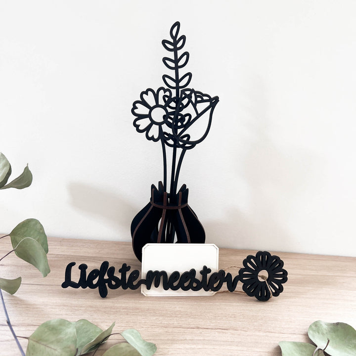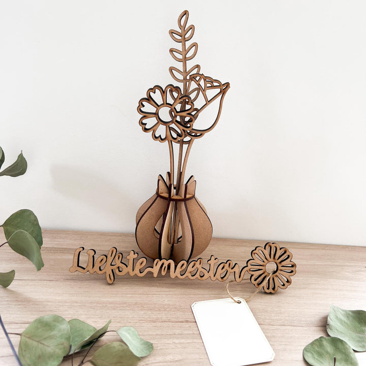 Wil jij de juf of meester verrassen met een leuk bloemetje en een kaartje? Dan is dit setje echt wat voor jou! In dit setje zit het bloemensetje hyacint en een wensbloem. dit setje is ook verkrijgbaar in het zwart. Het vaasje is erg makkelijk zelf in elkaar te zetten, hiervoor kan je deze instructie video gebruiken. Je kan bij dit pakket kiezen uit de volgende wensbloemen: - Liefste juf- Liefste meester