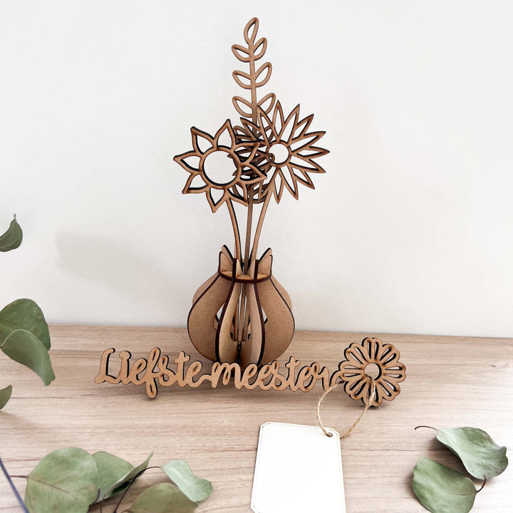 Wil jij de juf of meester verrassen met een leuk bloemetje en een kaartje? Dan is dit setje echt wat voor jou! In dit setje zit het bloemensetje hyacint en een wensbloem. dit setje is ook verkrijgbaar in het zwart. Het vaasje is erg makkelijk zelf in elkaar te zetten, hiervoor kan je deze instructie video gebruiken. Je kan bij dit pakket kiezen uit de volgende wensbloemen: - Liefste juf- Liefste meester