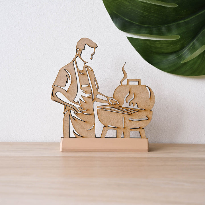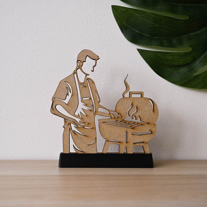 Verras je BBQ liefhebbende vader met dit unieke houten beeldje van een barbecueër, speciaal ontworpen voor Vaderdag. Met zijn gedetailleerde afwerking en stevige blokje als basis is dit decoratieve kunstwerk een geweldig cadeau voor elke vader die de BBQ verzorgd. Een blijvende herinnering aan zijn passie voor de grill, ideaal voor op het bureau of in de woonkamer.