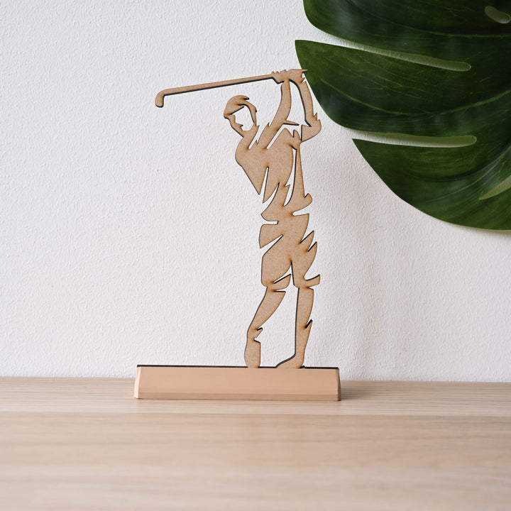 Verras je golfliefhebbende vader met dit unieke houten beeldje van een golfer, speciaal ontworpen voor Vaderdag. Met zijn gedetailleerde afwerking en stevige blokje als basis is dit decoratieve kunstwerk een geweldig cadeau voor elke golfvader. Een blijvende herinnering aan zijn passie voor golf, ideaal voor op het bureau of in de woonkamer.