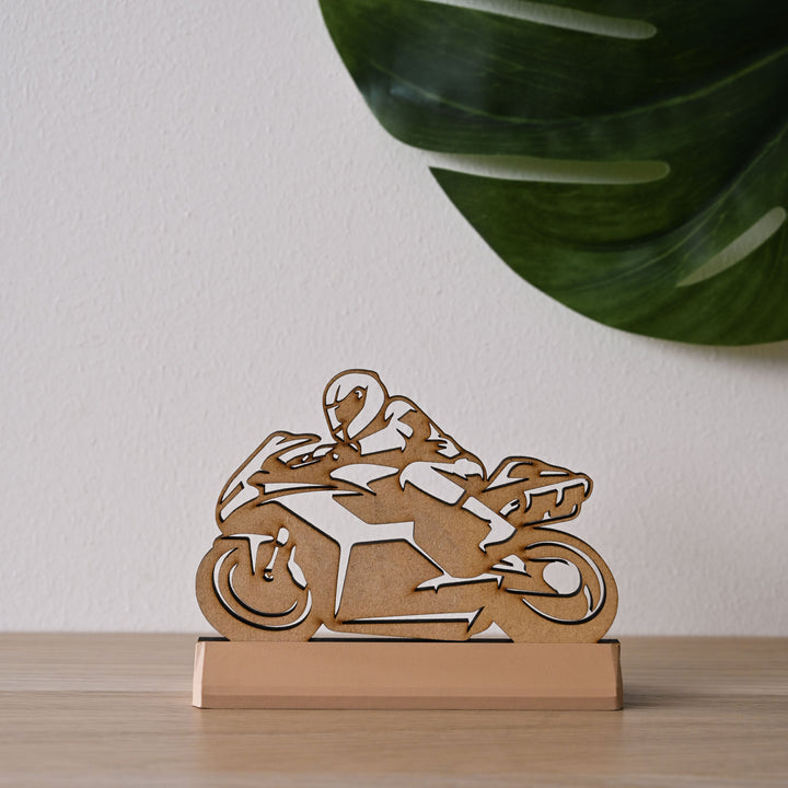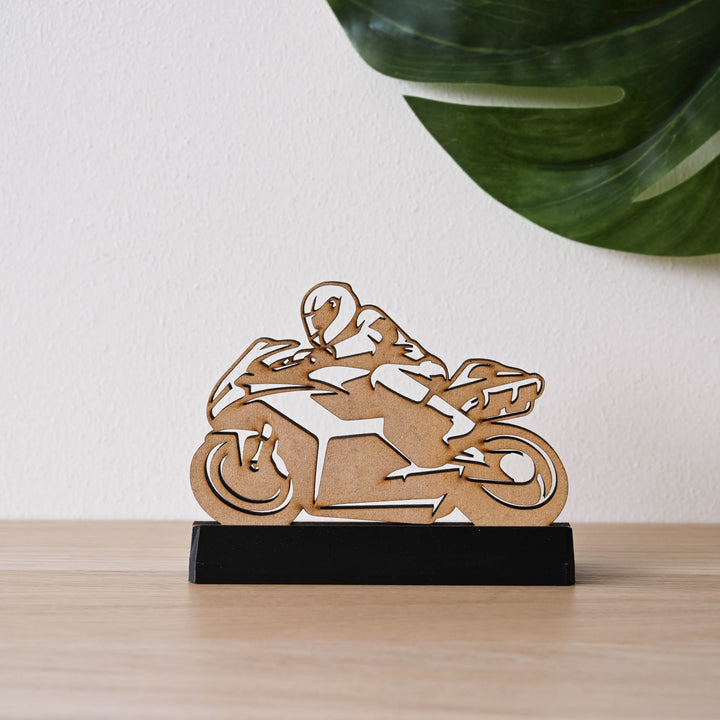 Verras je motorliefhebbende vader met dit unieke houten beeldje van een motorrijder, speciaal ontworpen voor Vaderdag. Met zijn gedetailleerde afwerking en stevige blokje als basis is dit decoratieve kunstwerk een geweldig cadeau voor elke motorrijdende vader. Een blijvende herinnering aan zijn passie voor motorrijden, ideaal voor op het bureau of in de woonkamer.