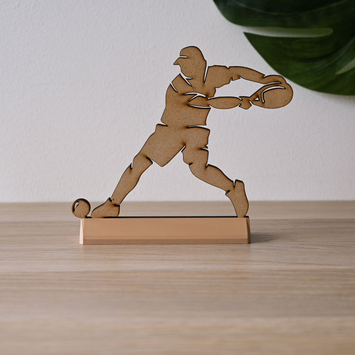 Verras je padelliefhebbende vader met dit unieke houten beeldje van een padel speler, speciaal ontworpen voor Vaderdag. Met zijn gedetailleerde afwerking en stevige blokje als basis is dit decoratieve kunstwerk een geweldig cadeau voor elke padel vader. Een blijvende herinnering aan zijn passie voor padel, ideaal voor op het bureau of in de woonkamer.