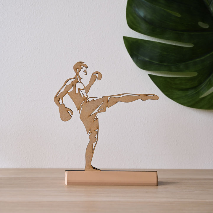 Verras je vader met dit unieke houten beeldje van een kickbokser/bokser, speciaal ontworpen voor Vaderdag. Met zijn gedetailleerde afwerking en stevige blokje als basis is dit decoratieve kunstwerk een geweldig cadeau voor elke vader die houdt van een potje sparren. Een blijvende herinnering aan zijn passie voor boksen of kickboksen, ideaal voor in de woonkamer, of op zijn bureau!
