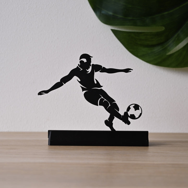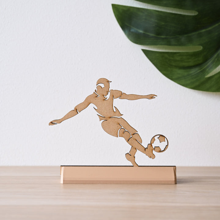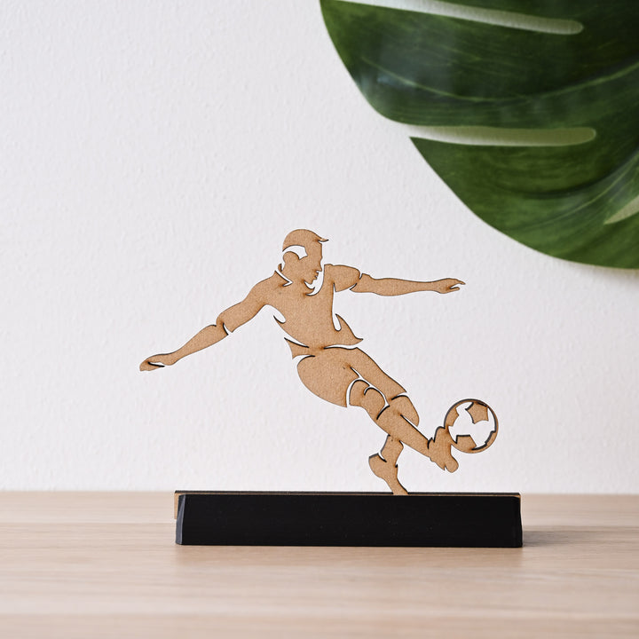 Verras je voetballiefhebbende vader met dit unieke houten beeldje van een voetballer, speciaal ontworpen voor Vaderdag. Met zijn gedetailleerde afwerking en stevige blokje als basis is dit decoratieve kunstwerk een geweldig cadeau voor elke voetbalvader. Een blijvende herinnering aan zijn passie voor voetbal, ideaal voor op het bureau of in de woonkamer.