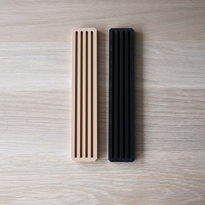 De basisplaat is gemaakt van PolyTerra PLA dit is een bioplastic 3D-printfilament waarin organische materialen zijn gecombineerd met PLA om het plastic gehalte te verminderen en een milieuvriendelijker filament te ontwikkelen. Het blokje is beschikbaar in 2 kleuren, beige en zwart.