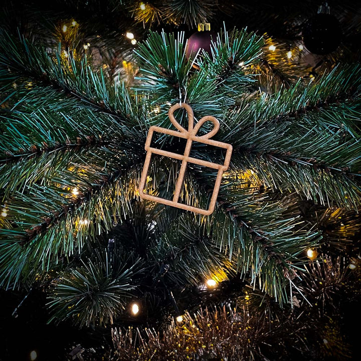 Deze kerstbal is gemaakt van 3mm dik hout en weegt daarom bijna niks, hierdoor gaan de takken van de kerstboom niet hangen. Er zit ruimte aan de bovenkant om zelf een kerstboom hanger of touwtje doorheen te doen.