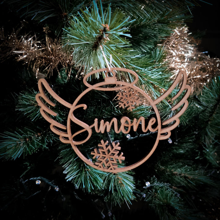 Deze kerstbal is gemaakt van 3mm dik hout en weegt daarom bijna niks, hierdoor gaan de takken van de kerstboom niet hangen. Er zit ruimte aan de bovenkant om zelf een kerstboom hanger of touwtje doorheen te doen.
