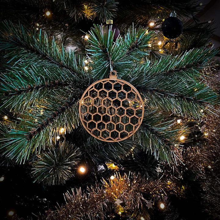 Deze kerstbal is gemaakt van 3mm dik hout en weegt daarom bijna niks, hierdoor gaan de takken van de kerstboom niet hangen. Er zit ruimte aan de bovenkant om zelf een kerstboom hanger of touwtje doorheen te doen.
