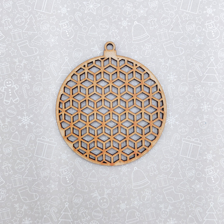 Deze kerstbal is gemaakt van 3mm dik hout en weegt daarom bijna niks, hierdoor gaan de takken van de kerstboom niet hangen. Er zit ruimte aan de bovenkant om zelf een kerstboom hanger of touwtje doorheen te doen.