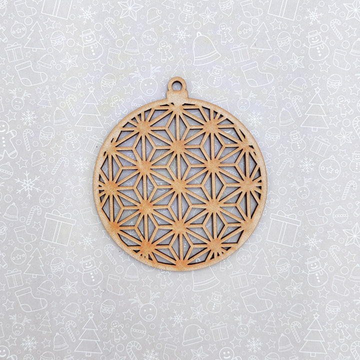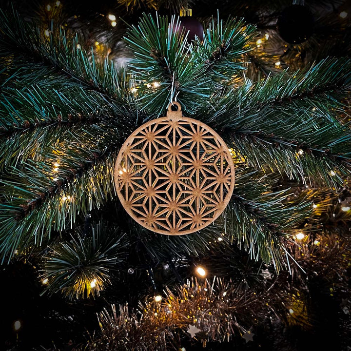 Deze kerstbal is gemaakt van 3mm dik hout en weegt daarom bijna niks, hierdoor gaan de takken van de kerstboom niet hangen. Er zit ruimte aan de bovenkant om zelf een kerstboom hanger of touwtje doorheen te doen.