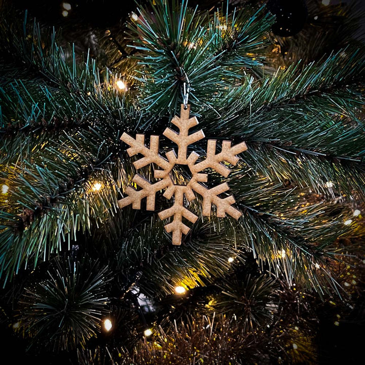 Deze kerstbal is gemaakt van 3mm dik hout en weegt daarom bijna niks, hierdoor gaan de takken van de kerstboom niet hangen. Er zit en gaatje aan de bovenkant om zelf een kerstboom hanger of touwtje doorheen te doen.