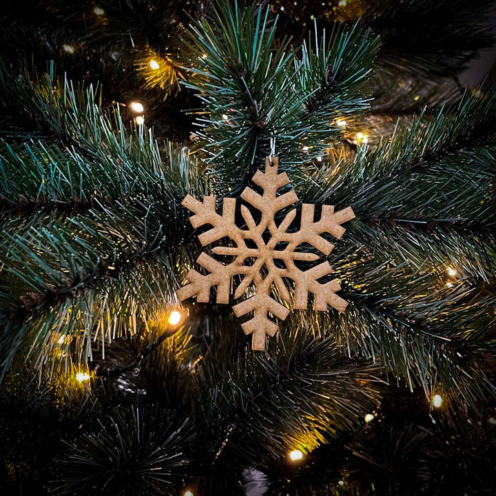 Deze kerstbal is gemaakt van 3mm dik hout en weegt daarom bijna niks, hierdoor gaan de takken van de kerstboom niet hangen. Er zit en gaatje aan de bovenkant om zelf een kerstboom hanger of touwtje doorheen te doen.