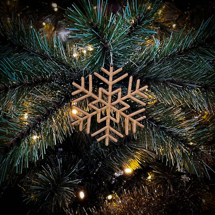 Deze kerstbal is gemaakt van 3mm dik hout en weegt daarom bijna niks, hierdoor gaan de takken van de kerstboom niet hangen. Er zit en gaatje aan de bovenkant om zelf een kerstboom hanger of touwtje doorheen te doen.