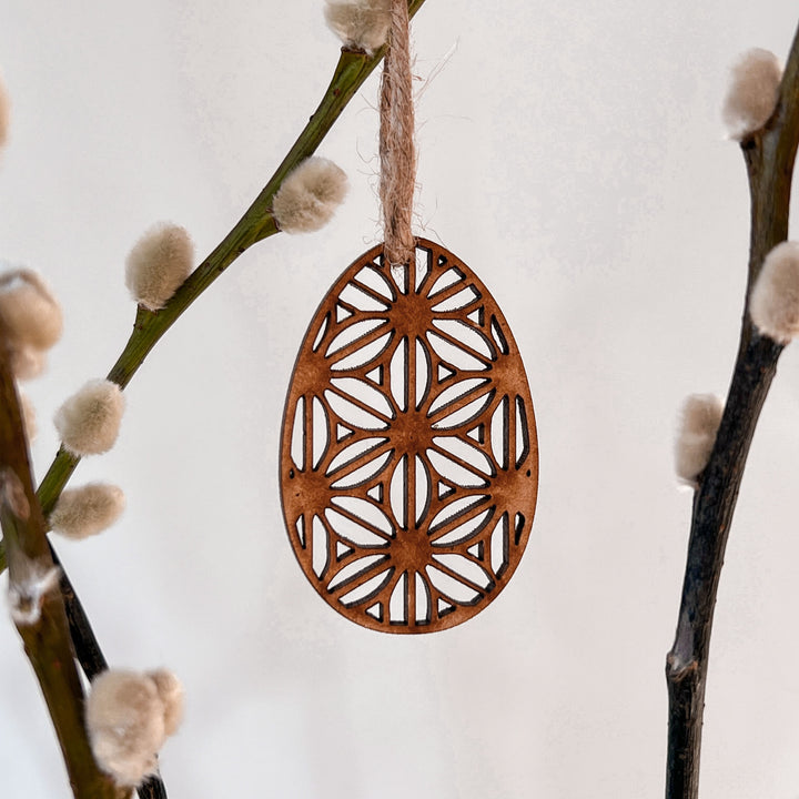 Deze Paashanger is gemaakt van 3mm dik hout en weegt daarom bijna niks, hierdoor gaan de Paastakken niet hangen. Er zit ruimte aan de bovenkant om zelf een touwtje doorheen te doen. Deze hangers is dus exclusief het touwtje.